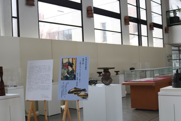 なお、現在、高岡キャンパス つままホールにて企画展「洒落と粋」(会期:令和5年12月4日(月)~令和6年1月16日(火))を開催中です。展示品の中には学生の解説文が添えられているものがあり、好評を得ています。