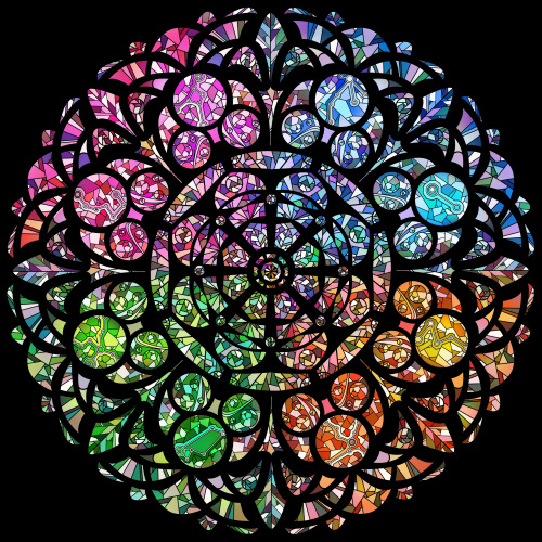 プラネタリウムに投影する作品ということで、星座のある空をイメージしたステンドグラス風の作品を制作した。